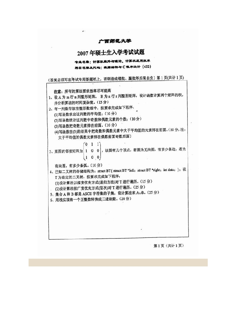 广西师范大学计算机科学与信息工程学院826数据结构(含C程序设计)历年考研真题汇编猴哥6个月前发布关注私信0.43MB9页05930广西师范大学计算机科学与信息工程学院826数据结构(含C程序设计)历年考研真题汇编此内容为免费资源,请登录后查看¥0 登录查看免费资源 第1页 / 共9页 第2页 / 共9页 第3页 / 共9页 该文档为免费文档,您可直接下载完整版进行阅读 © 版权声明文章版权归作者所有,未经允许请勿转载。THE END考研专业课 喜欢就支持一下吧点赞30赞赏 分享QQ空间微博QQ好友海报分享复制链接收藏