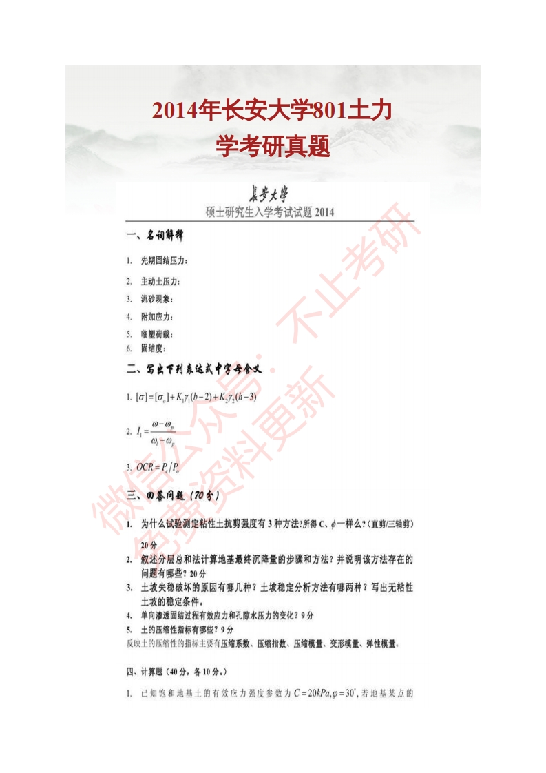 本校研究生微信kyxtt001长安大学801土力学历年考研真题提供专业课1对1服务猴哥6个月前发布关注私信5.02MB74页06112本校研究生微信kyxtt001长安大学801土力学历年考研真题提供专业课1对1服务此内容为免费资源,请登录后查看¥0 登录查看免费资源 第1页 / 共74页 第2页 / 共74页 第3页 / 共74页 该文档为免费文档,您可直接下载完整版进行阅读 © 版权声明文章版权归作者所有,未经允许请勿转载。THE END《长安大学》(801)土力学考研资料考研专业课 喜欢就支持一下吧点赞12赞赏 分享QQ空间微博QQ好友海报分享复制链接收藏