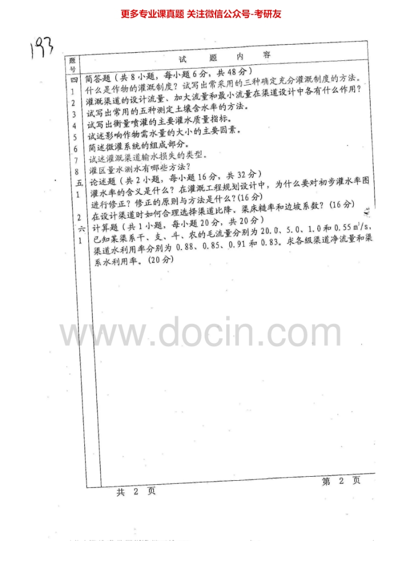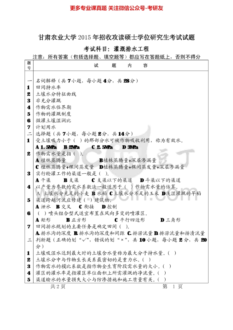 甘肃农业大学809灌溉排水工程2012、2015考研真题汇编.Image.Marked猴哥6个月前发布关注私信0.82MB4页04758甘肃农业大学809灌溉排水工程2012、2015考研真题汇编.Image.Marked此内容为免费资源,请登录后查看¥0 登录查看免费资源 第1页 / 共4页 第2页 / 共4页 第3页 / 共4页 该文档为免费文档,您可直接下载完整版进行阅读 © 版权声明文章版权归作者所有,未经允许请勿转载。THE END《甘肃农业大学》(809)灌溉排水工程考研资料考研专业课 喜欢就支持一下吧点赞58赞赏 分享QQ空间微博QQ好友海报分享复制链接收藏