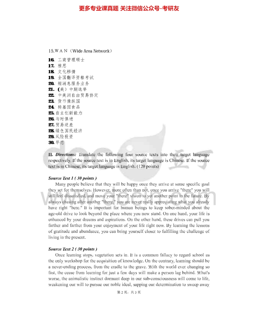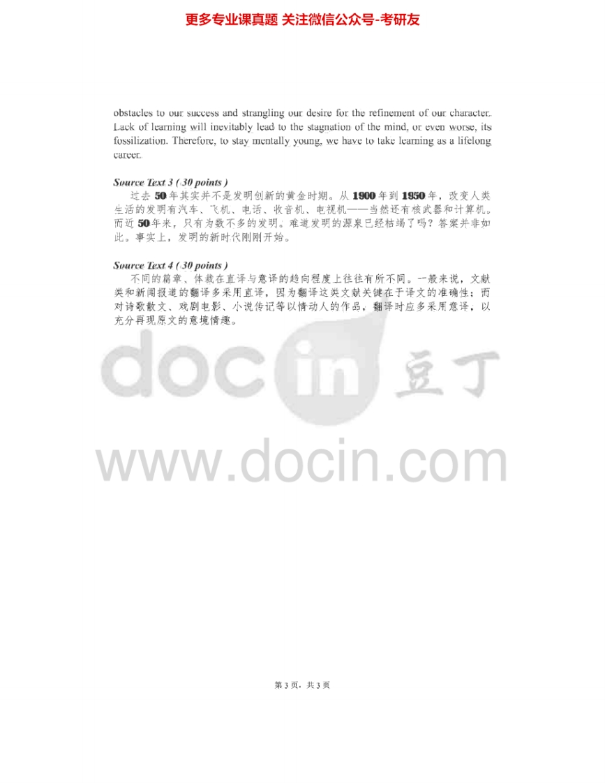 电子科技大学357英语翻译基础2011-2015真题其中2011-2013有答案考研真题汇编.Image.Marked猴哥6个月前发布关注私信3.56MB23页04465电子科技大学357英语翻译基础2011-2015真题其中2011-2013有答案考研真题汇编.Image.Marked此内容为免费资源,请登录后查看¥0 登录查看免费资源 第1页 / 共23页 第2页 / 共23页 第3页 / 共23页 该文档为免费文档,您可直接下载完整版进行阅读 © 版权声明文章版权归作者所有,未经允许请勿转载。THE END《电子科技大学》(357)英语翻译基础考研资料考研专业课 喜欢就支持一下吧点赞65赞赏 分享QQ空间微博QQ好友海报分享复制链接收藏
