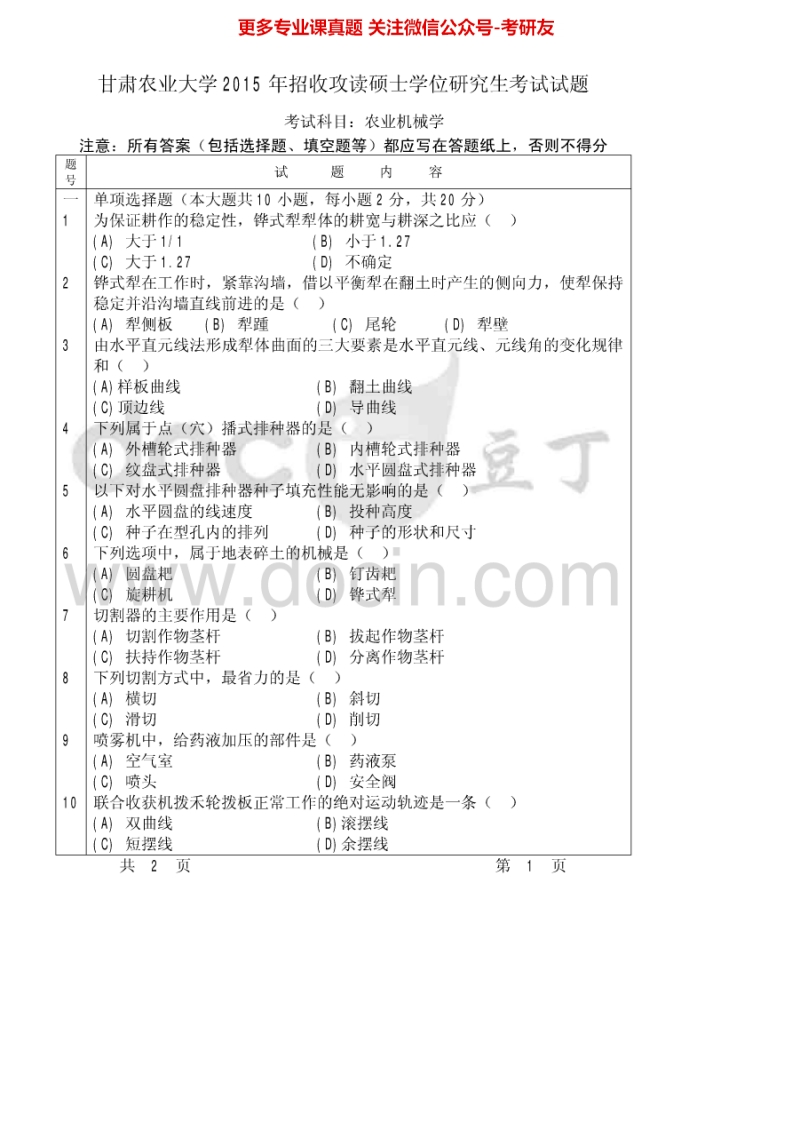 甘肃农业大学816农业机械学2012、2015考研真题汇编.Image.Marked猴哥6个月前发布关注私信1.02MB4页06939甘肃农业大学816农业机械学2012、2015考研真题汇编.Image.Marked此内容为免费资源,请登录后查看¥0 登录查看免费资源 第1页 / 共4页 第2页 / 共4页 第3页 / 共4页 该文档为免费文档,您可直接下载完整版进行阅读 © 版权声明文章版权归作者所有,未经允许请勿转载。THE END《甘肃农业大学》(816)农业机械学考研资料考研专业课 喜欢就支持一下吧点赞39赞赏 分享QQ空间微博QQ好友海报分享复制链接收藏
