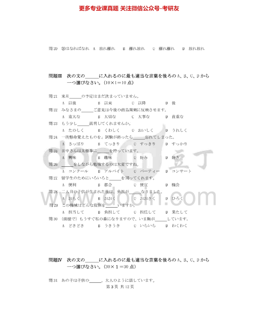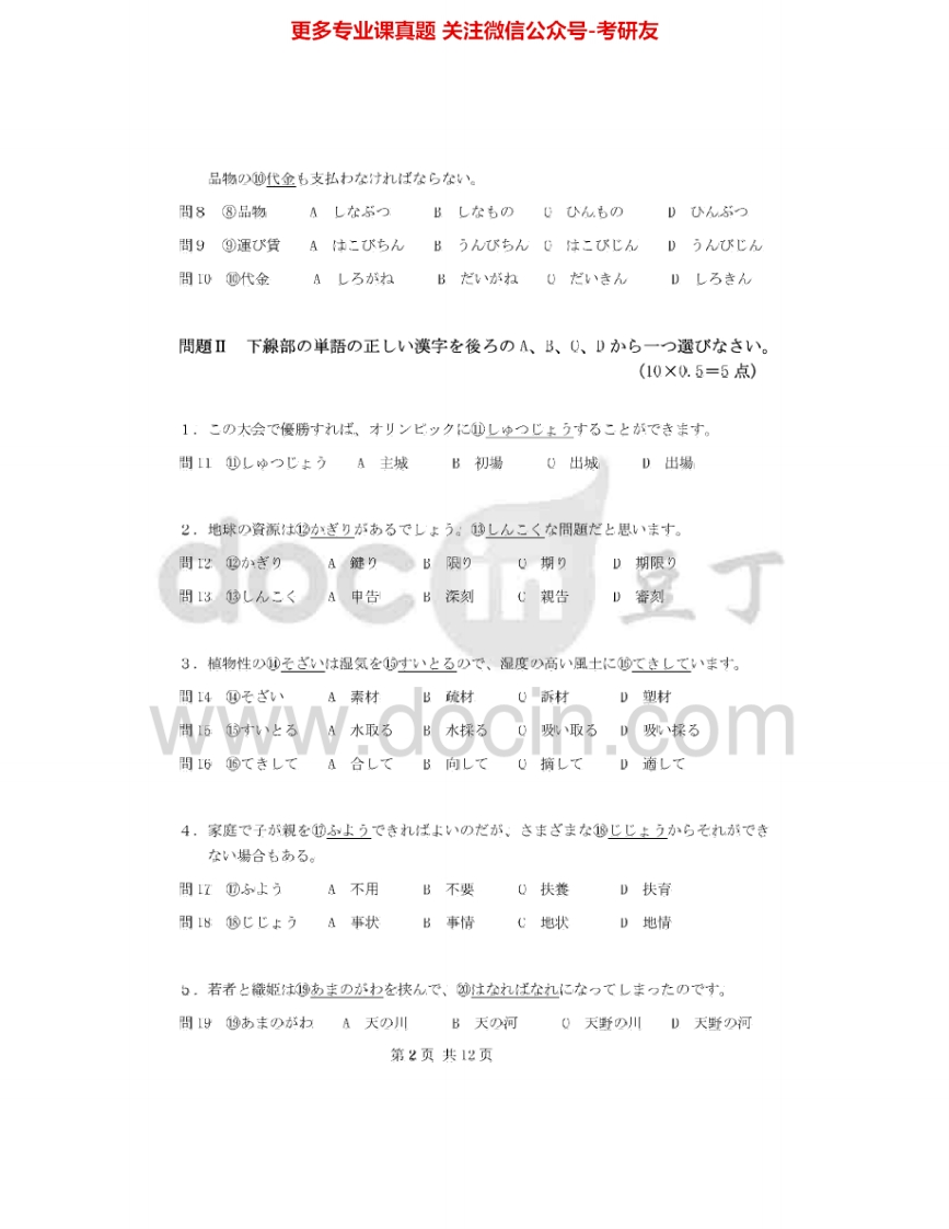 电子科技大学243日语(二外)2002、2004-2006、2010-20152002、2004-2006、2010-2013有答案考研真题汇编.Image.Marked猴哥6个月前发布关注私信17.20MB102页07348电子科技大学243日语(二外)2002、2004-2006、2010-20152002、2004-2006、2010-2013有答案考研真题汇编.Image.Marked此内容为免费资源,请登录后查看¥0 登录查看免费资源 第1页 / 共102页 第2页 / 共102页 第3页 / 共102页 该文档为免费文档,您可直接下载完整版进行阅读 © 版权声明文章版权归作者所有,未经允许请勿转载。THE END考研专业课 喜欢就支持一下吧点赞48赞赏 分享QQ空间微博QQ好友海报分享复制链接收藏