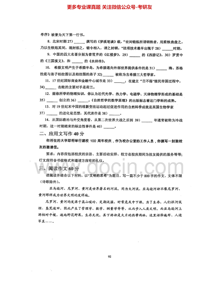 电子科技大学448汉语写作与百科知识2011-2015考研真题汇编.Image.Marked猴哥6个月前发布关注私信8.23MB28页06840电子科技大学448汉语写作与百科知识2011-2015考研真题汇编.Image.Marked此内容为免费资源,请登录后查看¥0 登录查看免费资源 第1页 / 共28页 第2页 / 共28页 第3页 / 共28页 该文档为免费文档,您可直接下载完整版进行阅读 © 版权声明文章版权归作者所有,未经允许请勿转载。THE END《电子科技大学》(448)汉语写作与百科知识考研资料考研专业课 喜欢就支持一下吧点赞40赞赏 分享QQ空间微博QQ好友海报分享复制链接收藏