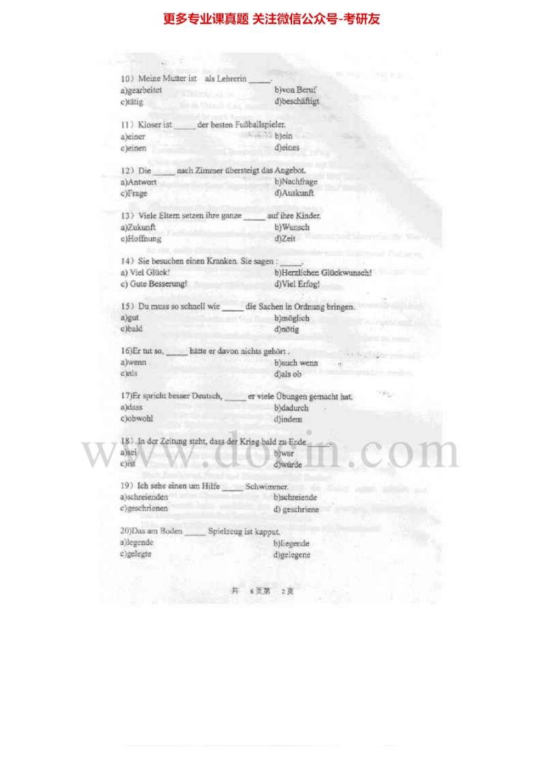 上海交通大学244二外德语1998-2007考研真题汇编.Image.Marked_1753610722猴哥6个月前发布关注私信9.93MB50页07411上海交通大学244二外德语1998-2007考研真题汇编.Image.Marked_1753610722此内容为免费资源,请登录后查看¥0 登录查看免费资源 第1页 / 共50页 第2页 / 共50页 第3页 / 共50页 该文档为免费文档,您可直接下载完整版进行阅读 © 版权声明文章版权归作者所有,未经允许请勿转载。THE END《上海交通大学》(753)基础医学综合考研资料考研专业课 喜欢就支持一下吧点赞11赞赏 分享QQ空间微博QQ好友海报分享复制链接收藏