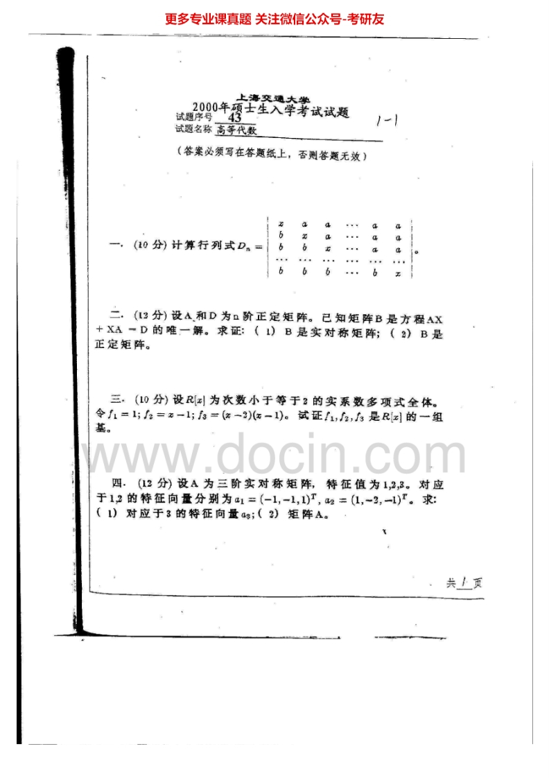 上海交通大学828高等代数1999-2000、2002、2004-2006考研真题汇编.Image.Marked_1753610725猴哥6个月前发布关注私信2.01MB10页08316上海交通大学828高等代数1999-2000、2002、2004-2006考研真题汇编.Image.Marked_1753610725此内容为免费资源,请登录后查看¥0 登录查看免费资源 第1页 / 共10页 第2页 / 共10页 第3页 / 共10页 该文档为免费文档,您可直接下载完整版进行阅读 © 版权声明文章版权归作者所有,未经允许请勿转载。THE END考研专业课 喜欢就支持一下吧点赞16赞赏 分享QQ空间微博QQ好友海报分享复制链接收藏