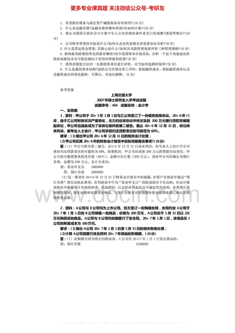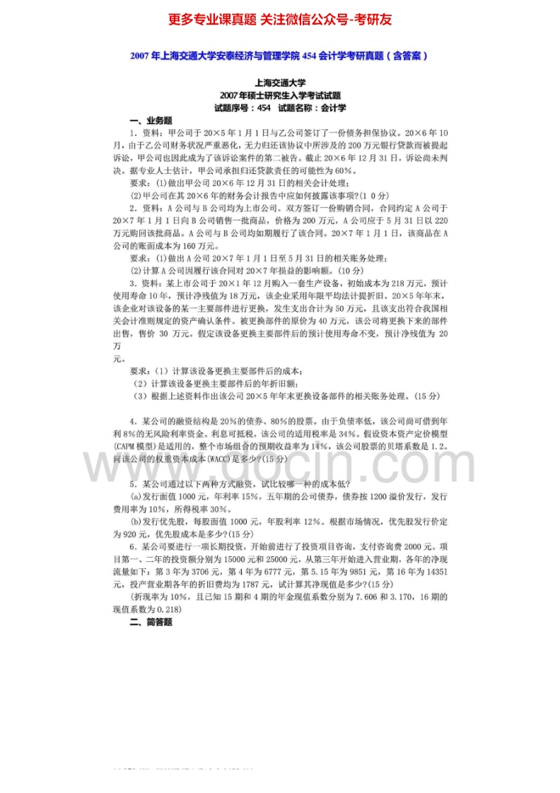 上海交通大学843会计学1999-2007、2013真题其中2001-2007有答案考研真题汇编.Image.Marked_1753610726猴哥6个月前发布关注私信23.25MB91页05755上海交通大学843会计学1999-2007、2013真题其中2001-2007有答案考研真题汇编.Image.Marked_1753610726此内容为免费资源,请登录后查看¥0 登录查看免费资源 第1页 / 共91页 第2页 / 共91页 第3页 / 共91页 该文档为免费文档,您可直接下载完整版进行阅读 © 版权声明文章版权归作者所有,未经允许请勿转载。THE END考研专业课 喜欢就支持一下吧点赞55赞赏 分享QQ空间微博QQ好友海报分享复制链接收藏