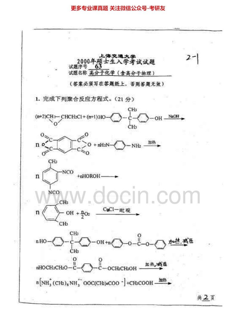 上海交通大学837高分子化学与高分子物理2001-2005高分子化学1998、2000考研真题汇编.Image.Marked_1753610726