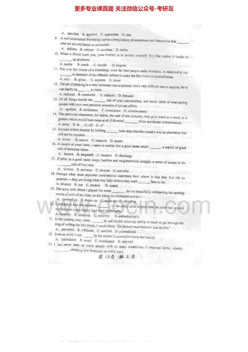 上海交通大学849英语水平考试1999-2007真题其中2003-2003有答案考研真题汇编.Image.Marked_1753610727猴哥6个月前发布关注私信42.75MB133页07849上海交通大学849英语水平考试1999-2007真题其中2003-2003有答案考研真题汇编.Image.Marked_1753610727此内容为免费资源,请登录后查看¥0 登录查看免费资源 第1页 / 共133页 第2页 / 共133页 第3页 / 共133页 该文档为免费文档,您可直接下载完整版进行阅读 © 版权声明文章版权归作者所有,未经允许请勿转载。THE END《上海交通大学》(753)基础医学综合考研资料《上海交通大学》(849)经济管理基础考研资料考研专业课 喜欢就支持一下吧点赞49赞赏 分享QQ空间微博QQ好友海报分享复制链接收藏