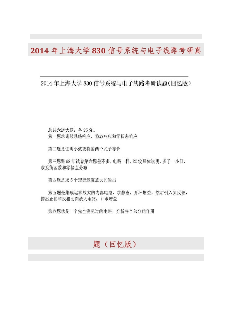 上海大学828信号系统与电子线路历年考研真题汇编(含部分答案)_1753610737猴哥6个月前发布关注私信3.43MB86页08131上海大学828信号系统与电子线路历年考研真题汇编(含部分答案)_1753610737此内容为免费资源,请登录后查看¥0 登录查看免费资源 第1页 / 共86页 第2页 / 共86页 第3页 / 共86页 该文档为免费文档,您可直接下载完整版进行阅读 © 版权声明文章版权归作者所有,未经允许请勿转载。THE END《上海大学》(828)宪法学及刑法学考研资料考研专业课 喜欢就支持一下吧点赞31赞赏 分享QQ空间微博QQ好友海报分享复制链接收藏