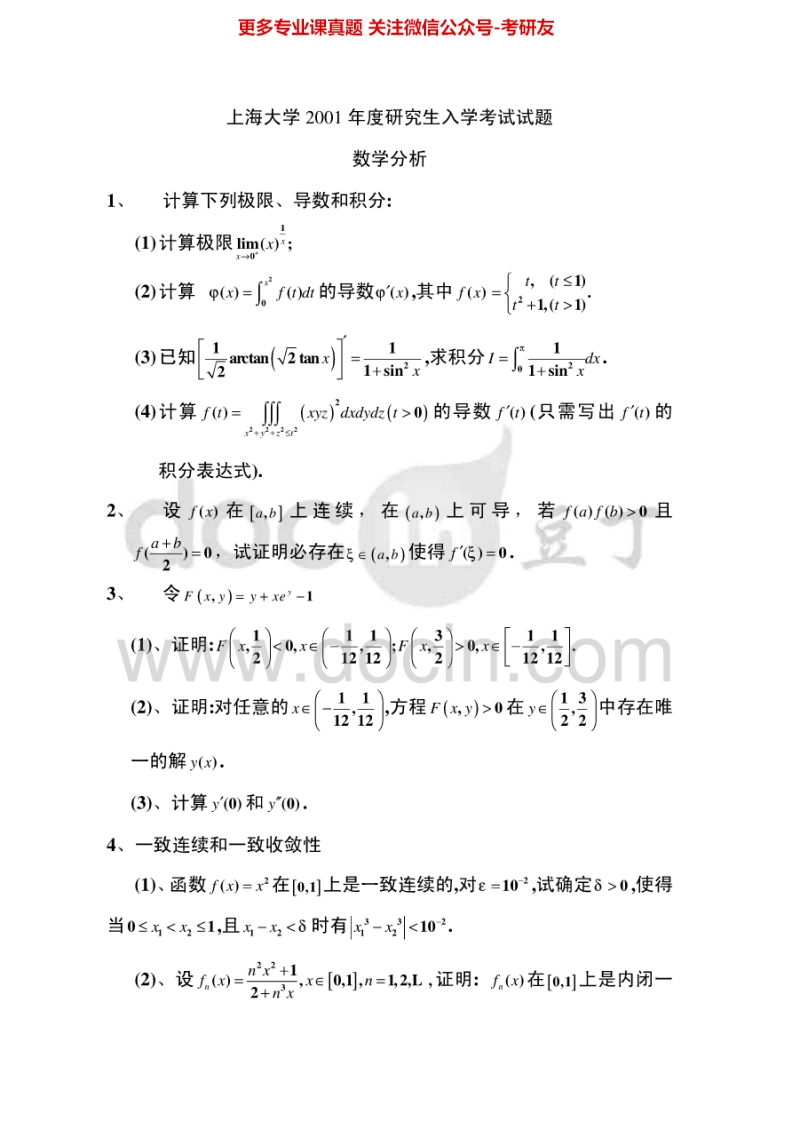 上海大学数学分析2000-2008、2009考研真题汇编.Image.Marked猴哥6个月前发布关注私信0.85MB16页09610上海大学数学分析2000-2008、2009考研真题汇编.Image.Marked此内容为免费资源,请登录后查看¥0 登录查看免费资源 第1页 / 共16页 第2页 / 共16页 第3页 / 共16页 该文档为免费文档,您可直接下载完整版进行阅读 © 版权声明文章版权归作者所有,未经允许请勿转载。THE END考研专业课 喜欢就支持一下吧点赞10赞赏 分享QQ空间微博QQ好友海报分享复制链接收藏