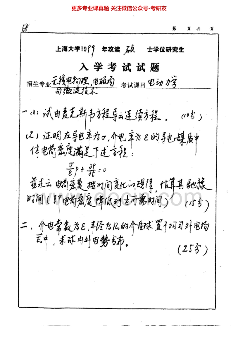 上海大学电动力学历年真题1998-2001考研真题汇编.Image.Marked猴哥6个月前发布关注私信2.14MB8页04656上海大学电动力学历年真题1998-2001考研真题汇编.Image.Marked此内容为免费资源,请登录后查看¥0 登录查看免费资源 第1页 / 共8页 第2页 / 共8页 第3页 / 共8页 该文档为免费文档,您可直接下载完整版进行阅读 © 版权声明文章版权归作者所有,未经允许请勿转载。THE END考研专业课 喜欢就支持一下吧点赞56赞赏 分享QQ空间微博QQ好友海报分享复制链接收藏