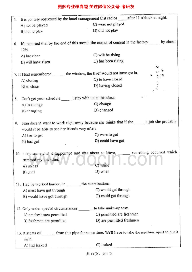 厦门大学241英语(二外)2003-2006考研真题汇编.Image.Marked猴哥6个月前发布关注私信21.40MB51页06753厦门大学241英语(二外)2003-2006考研真题汇编.Image.Marked此内容为免费资源,请登录后查看¥0 登录查看免费资源 第1页 / 共51页 第2页 / 共51页 第3页 / 共51页 该文档为免费文档,您可直接下载完整版进行阅读 © 版权声明文章版权归作者所有,未经允许请勿转载。THE END考研专业课 喜欢就支持一下吧点赞53赞赏 分享QQ空间微博QQ好友海报分享复制链接收藏