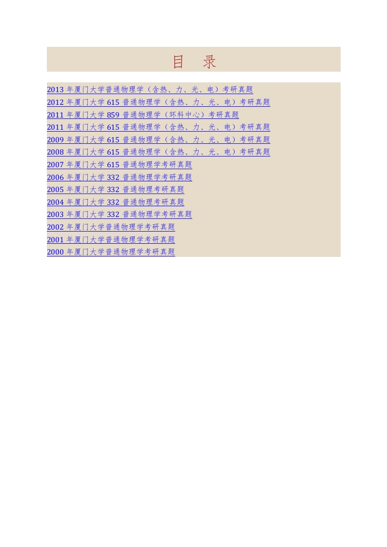 厦门大学615普通物理学(含热力光电)历年考研真题汇编猴哥6个月前发布关注私信3.47MB64页04163厦门大学615普通物理学(含热力光电)历年考研真题汇编此内容为免费资源,请登录后查看¥0 登录查看免费资源 第1页 / 共64页 第2页 / 共64页 第3页 / 共64页 该文档为免费文档,您可直接下载完整版进行阅读 © 版权声明文章版权归作者所有,未经允许请勿转载。THE END考研专业课 喜欢就支持一下吧点赞63赞赏 分享QQ空间微博QQ好友海报分享复制链接收藏