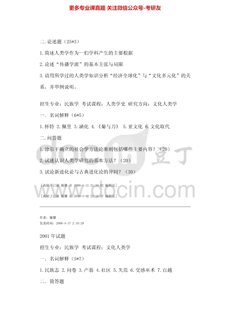 厦门大学704人类学通论1999-2002、2004-2013考研真题汇编.Image.Marked猴哥6个月前发布关注私信1.98MB18页08932厦门大学704人类学通论1999-2002、2004-2013考研真题汇编.Image.Marked此内容为免费资源,请登录后查看¥0 登录查看免费资源 第1页 / 共18页 第2页 / 共18页 第3页 / 共18页 该文档为免费文档,您可直接下载完整版进行阅读 © 版权声明文章版权归作者所有,未经允许请勿转载。THE END《厦门大学》(704)人类学通论考研资料考研专业课 喜欢就支持一下吧点赞32赞赏 分享QQ空间微博QQ好友海报分享复制链接收藏
