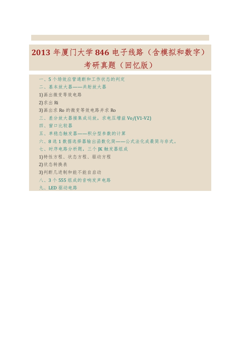 厦门大学846电子线路(含模拟和数字)历年考研真题汇编猴哥6个月前发布关注私信2.83MB48页06740厦门大学846电子线路(含模拟和数字)历年考研真题汇编此内容为免费资源,请登录后查看¥0 登录查看免费资源 第1页 / 共48页 第2页 / 共48页 第3页 / 共48页 该文档为免费文档,您可直接下载完整版进行阅读 © 版权声明文章版权归作者所有,未经允许请勿转载。THE END考研专业课 喜欢就支持一下吧点赞40赞赏 分享QQ空间微博QQ好友海报分享复制链接收藏