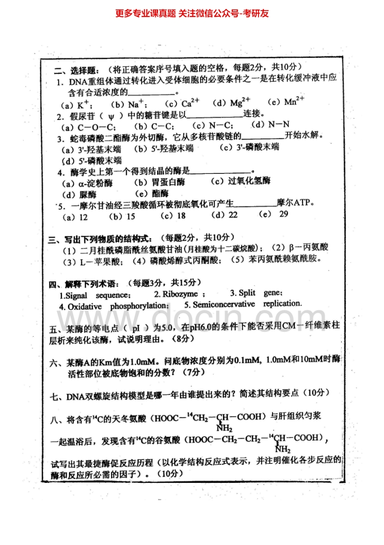 厦门大学生物化学1999-2001、2003-2013考研真题汇编.Image.Marked猴哥6个月前发布关注私信21.65MB73页06857厦门大学生物化学1999-2001、2003-2013考研真题汇编.Image.Marked此内容为免费资源,请登录后查看¥0 登录查看免费资源 第1页 / 共73页 第2页 / 共73页 第3页 / 共73页 该文档为免费文档,您可直接下载完整版进行阅读 © 版权声明文章版权归作者所有,未经允许请勿转载。THE END考研专业课 喜欢就支持一下吧点赞57赞赏 分享QQ空间微博QQ好友海报分享复制链接收藏