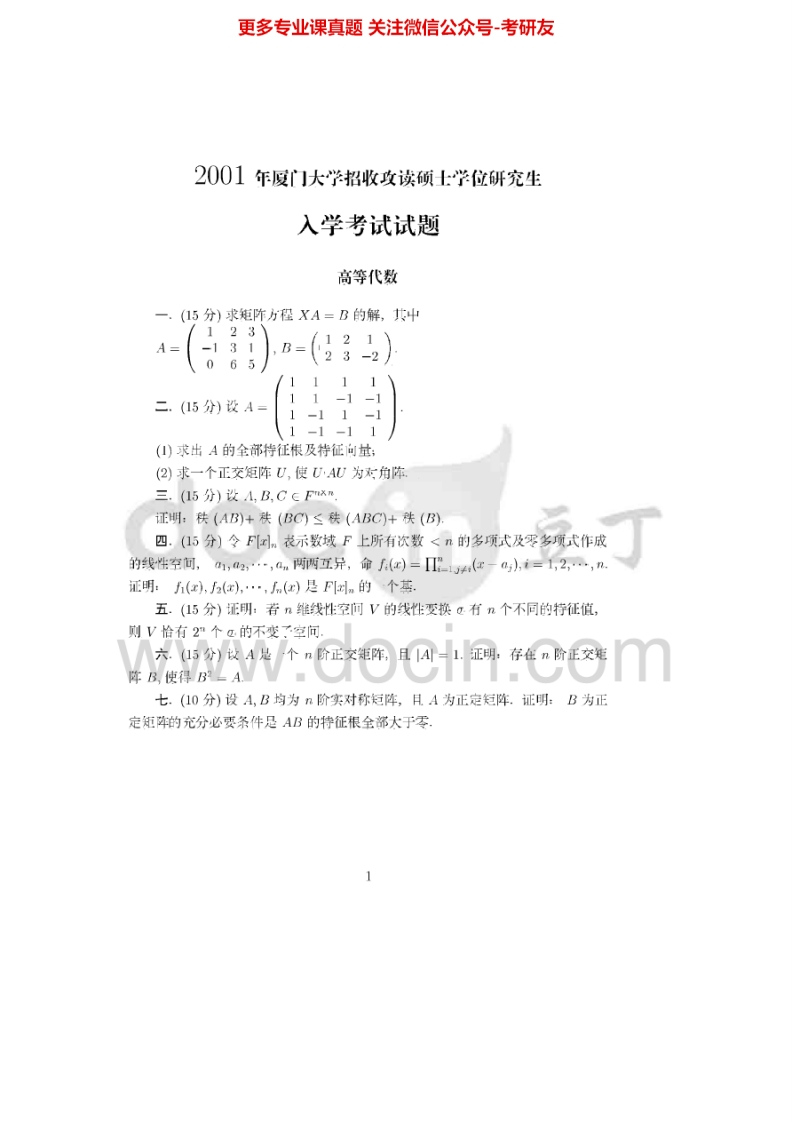 厦门大学高等代数2000-2016考研真题汇编.Image.Marked-学习资源网 - 分享优质学习资料