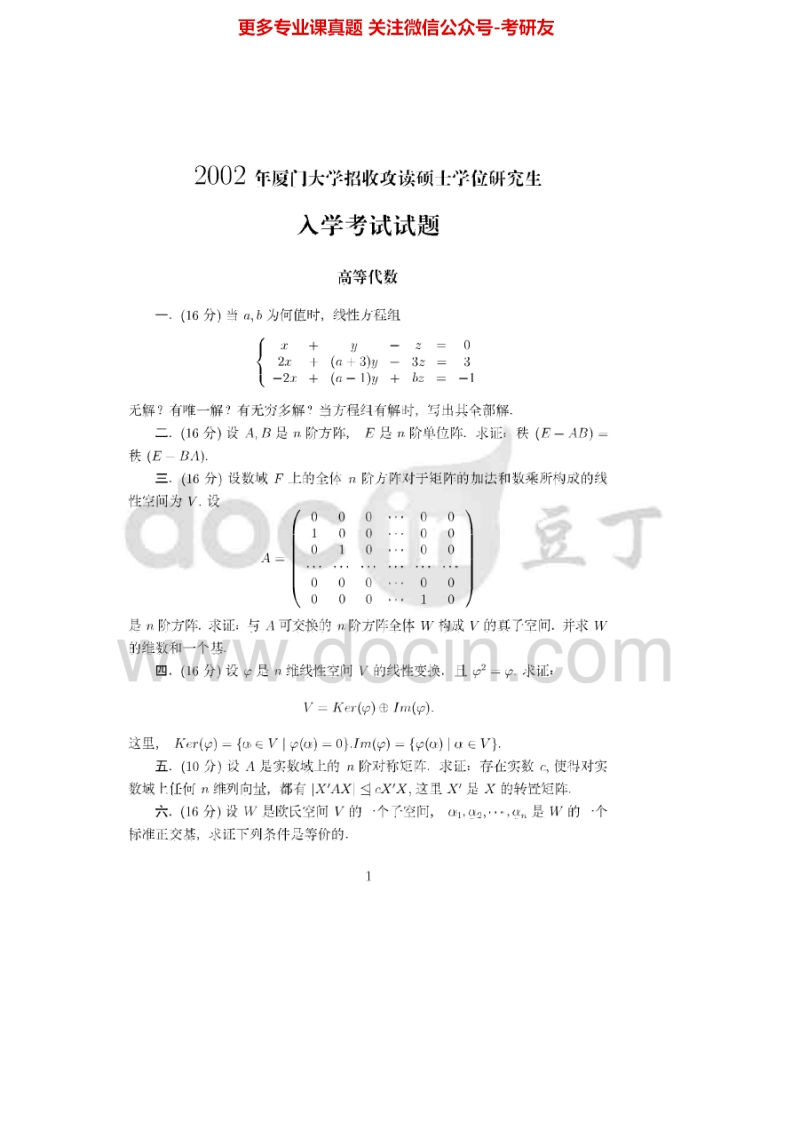 厦门大学高等代数2000-2016考研真题汇编.Image.Marked