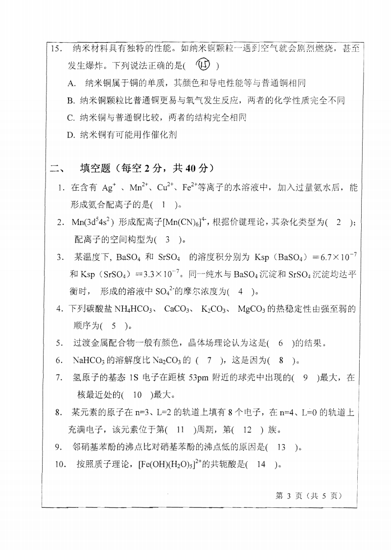 山东师范大学无机化学2010年考研试题猴哥6个月前发布关注私信0.20MB5页06329山东师范大学无机化学2010年考研试题此内容为免费资源,请登录后查看¥0 登录查看免费资源 第1页 / 共5页 第2页 / 共5页 第3页 / 共5页 该文档为免费文档,您可直接下载完整版进行阅读 © 版权声明文章版权归作者所有,未经允许请勿转载。THE END考研专业课 喜欢就支持一下吧点赞29赞赏 分享QQ空间微博QQ好友海报分享复制链接收藏