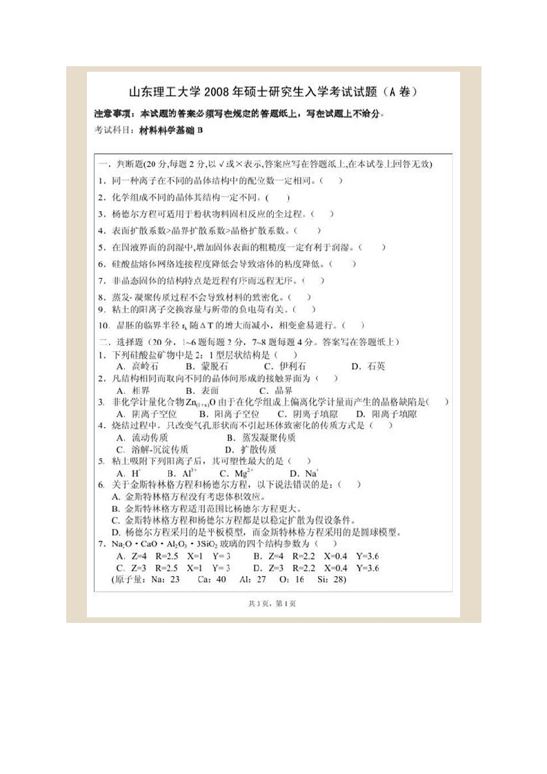 山东理工大学材料科学与工程学院919材料科学基础B历年考研真题汇编-学习资源网 - 分享优质学习资料