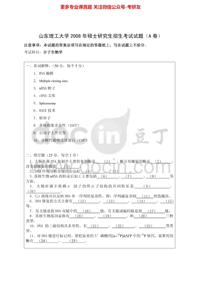 山东理工大学973分子生物学2006、2008考研真题汇编.Image.Marked猴哥6个月前发布关注私信0.31MB3页06151山东理工大学973分子生物学2006、2008考研真题汇编.Image.Marked此内容为免费资源,请登录后查看¥0 登录查看免费资源 第1页 / 共3页 第2页 / 共3页 第3页 / 共3页 已完成全部阅读,共3页 © 版权声明文章版权归作者所有,未经允许请勿转载。THE END考研专业课 喜欢就支持一下吧点赞51赞赏 分享QQ空间微博QQ好友海报分享复制链接收藏