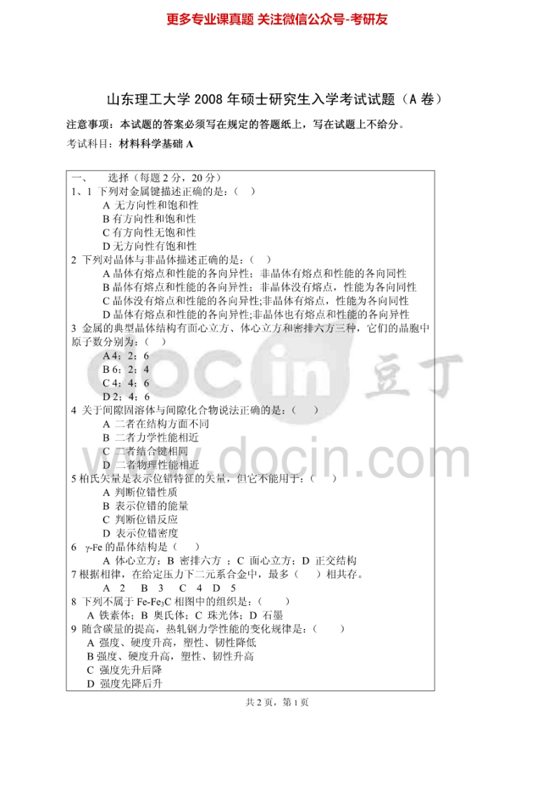 山东理工大学918材料科学基础A2006、2008考研真题汇编.Image.Marked