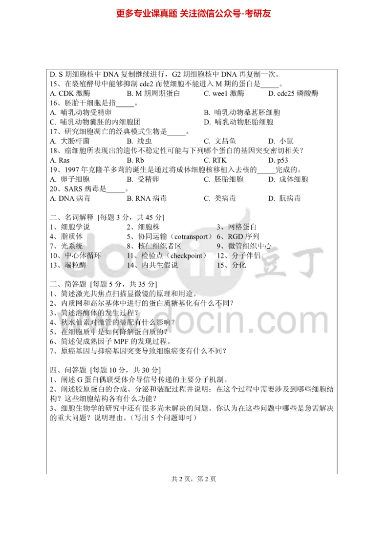 山东理工大学974细胞生物学2006、2008考研真题汇编.Image.Marked猴哥6个月前发布关注私信0.28MB3页08823山东理工大学974细胞生物学2006、2008考研真题汇编.Image.Marked此内容为免费资源,请登录后查看¥0 登录查看免费资源 第1页 / 共3页 第2页 / 共3页 第3页 / 共3页 已完成全部阅读,共3页 © 版权声明文章版权归作者所有,未经允许请勿转载。THE END《山东理工大学》(974)细胞生物学考研资料考研专业课 喜欢就支持一下吧点赞23赞赏 分享QQ空间微博QQ好友海报分享复制链接收藏