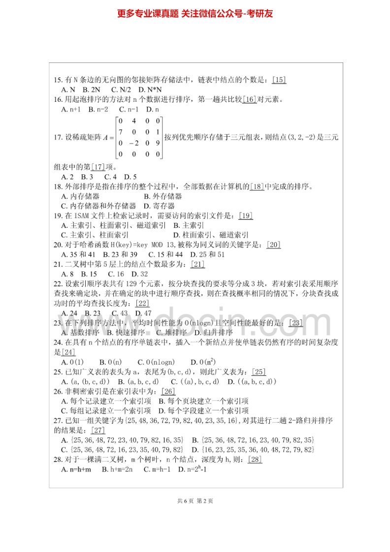 山东理工大学880组成原理与数据结构2006、2008考研真题汇编.Image.Marked猴哥6个月前发布关注私信0.65MB9页08643山东理工大学880组成原理与数据结构2006、2008考研真题汇编.Image.Marked此内容为免费资源,请登录后查看¥0 登录查看免费资源 第1页 / 共9页 第2页 / 共9页 第3页 / 共9页 该文档为免费文档,您可直接下载完整版进行阅读 © 版权声明文章版权归作者所有,未经允许请勿转载。THE END《山东理工大学》(880)数据结构考研资料考研专业课 喜欢就支持一下吧点赞43赞赏 分享QQ空间微博QQ好友海报分享复制链接收藏
