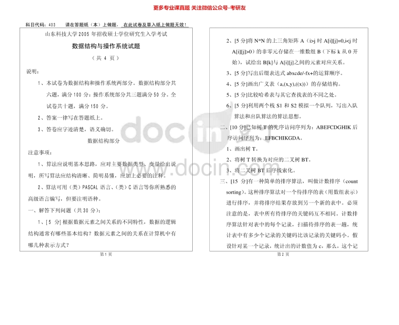 山东科技大学数据结构与操作系统2004-2008、2010-2015考研真题汇编.Image.Marked猴哥6个月前发布关注私信2.58MB32页08828山东科技大学数据结构与操作系统2004-2008、2010-2015考研真题汇编.Image.Marked此内容为免费资源,请登录后查看¥0 登录查看免费资源 第1页 / 共32页 第2页 / 共32页 第3页 / 共32页 该文档为免费文档,您可直接下载完整版进行阅读 © 版权声明文章版权归作者所有,未经允许请勿转载。THE END考研专业课 喜欢就支持一下吧点赞28赞赏 分享QQ空间微博QQ好友海报分享复制链接收藏