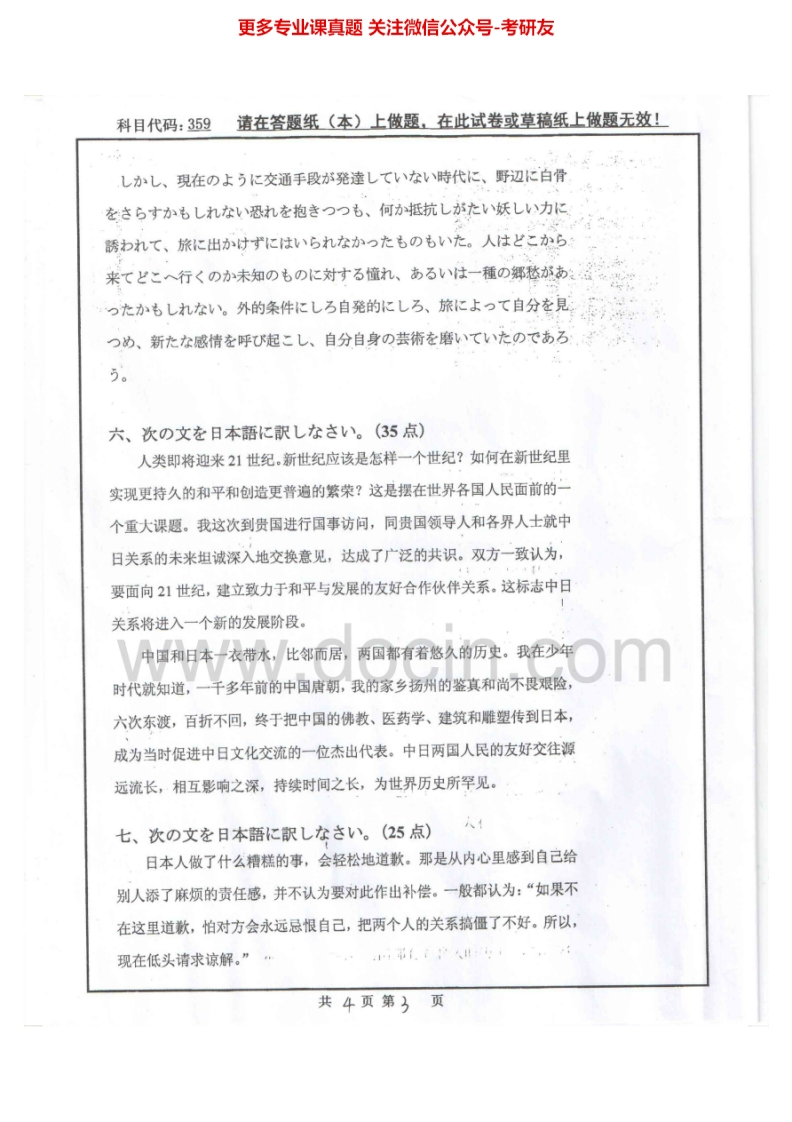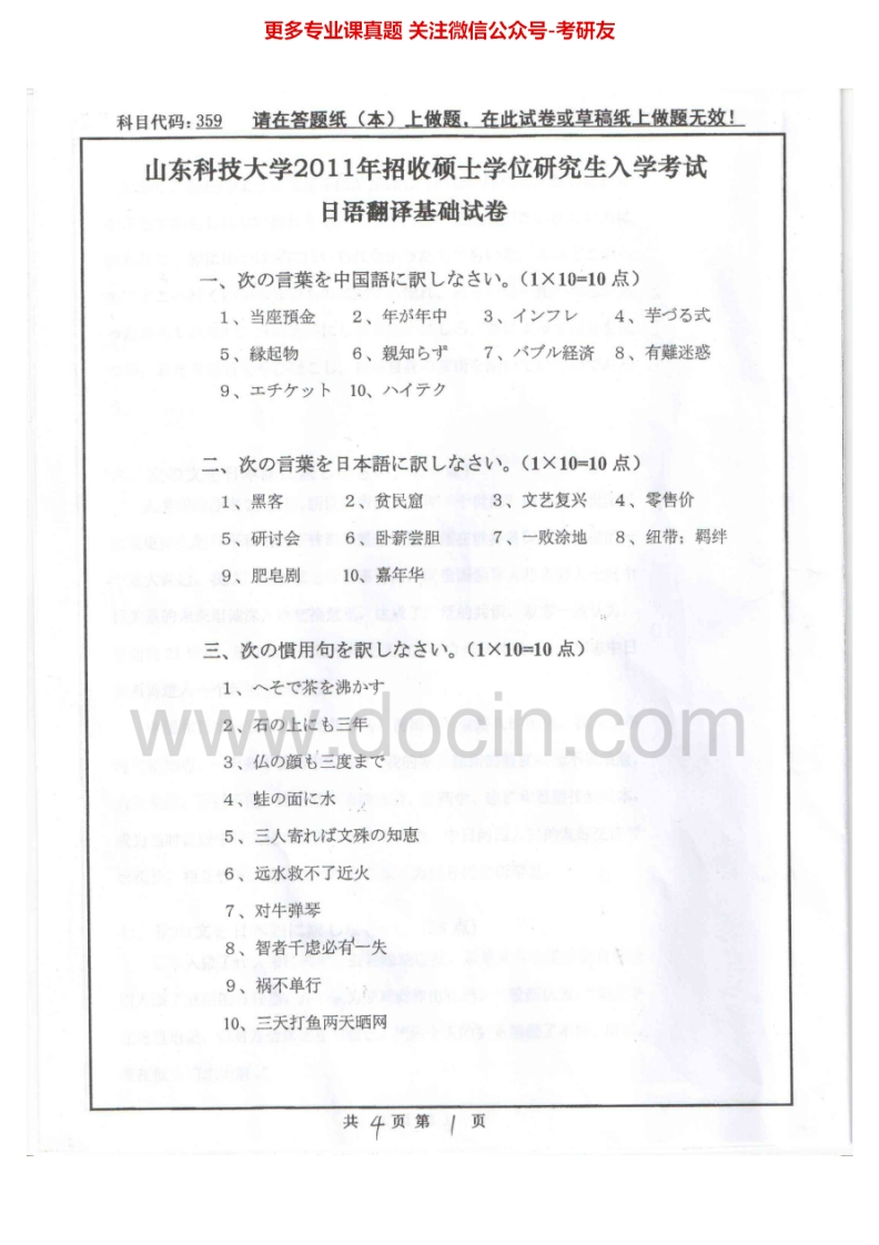 山东科技大学359日语翻译基础2011、2013-2015考研真题汇编.Image.Marked