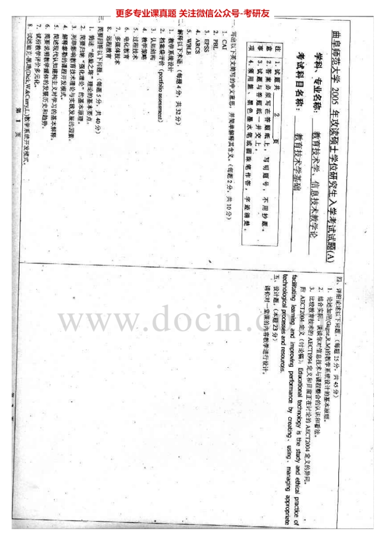 曲阜师范大学755教育技术学理论2005-2010考研真题汇编.Image.Marked-学习资源网 - 分享优质学习资料