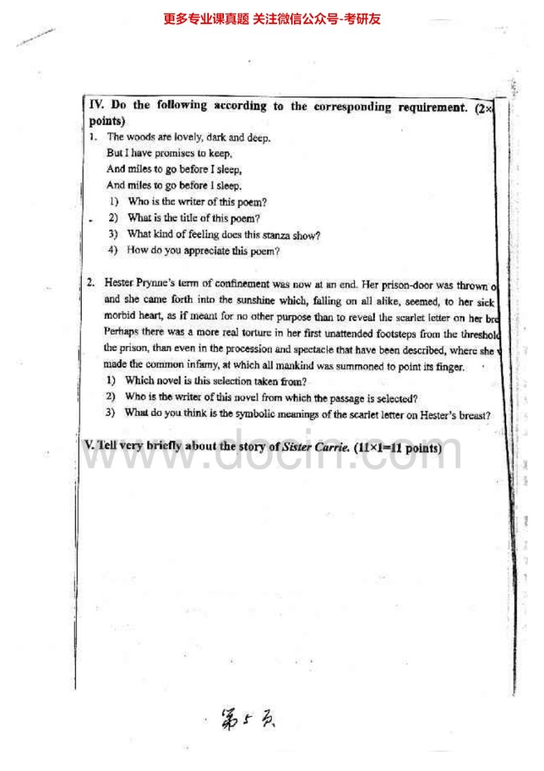 曲阜师范大学805英语语言文学基础2006-2010考研真题汇编.Image.Marked猴哥6个月前发布关注私信10.81MB20页03460曲阜师范大学805英语语言文学基础2006-2010考研真题汇编.Image.Marked此内容为免费资源,请登录后查看¥0 登录查看免费资源 第1页 / 共20页 第2页 / 共20页 第3页 / 共20页 该文档为免费文档,您可直接下载完整版进行阅读 © 版权声明文章版权归作者所有,未经允许请勿转载。THE END《曲阜师范大学》(805)翻译(英汉互译)与写作考研资料考研专业课 喜欢就支持一下吧点赞60赞赏 分享QQ空间微博QQ好友海报分享复制链接收藏