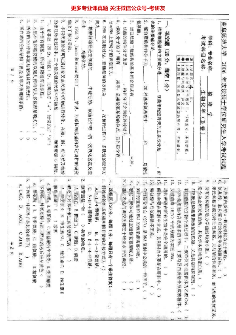 曲阜师范大学860生物化学2006-2010考研真题汇编.Image.Marked-学习资源网 - 分享优质学习资料