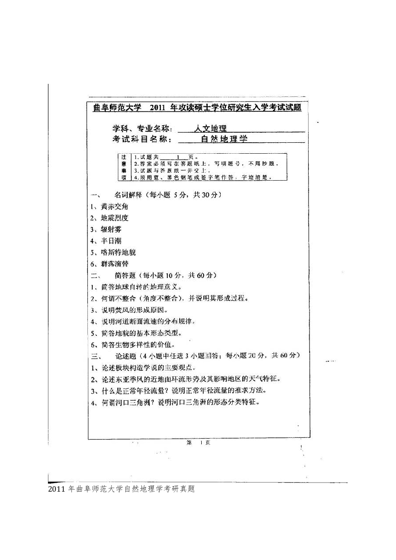 曲阜师范大学地理与旅游学院863自然地理学历年考研真题汇编-学习资源网 - 分享优质学习资料