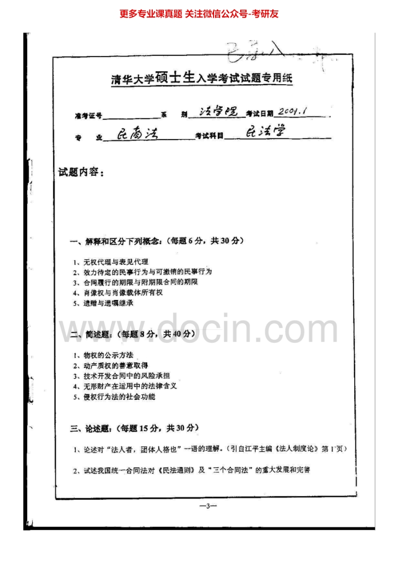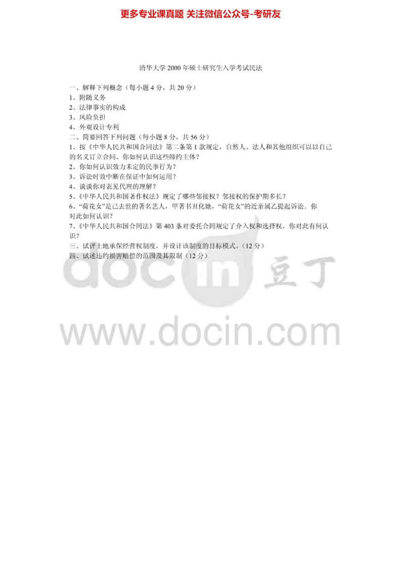 清华大学617法学综合卷2007民法学99-05、08-09法理学06、08-10考研真题汇编.Image.Marked猴哥6个月前发布关注私信3.04MB24页05031清华大学617法学综合卷2007民法学99-05、08-09法理学06、08-10考研真题汇编.Image.Marked此内容为免费资源,请登录后查看¥0 登录查看免费资源 第1页 / 共24页 第2页 / 共24页 第3页 / 共24页 该文档为免费文档,您可直接下载完整版进行阅读 © 版权声明文章版权归作者所有,未经允许请勿转载。THE END考研专业课 喜欢就支持一下吧点赞31赞赏 分享QQ空间微博QQ好友海报分享复制链接收藏