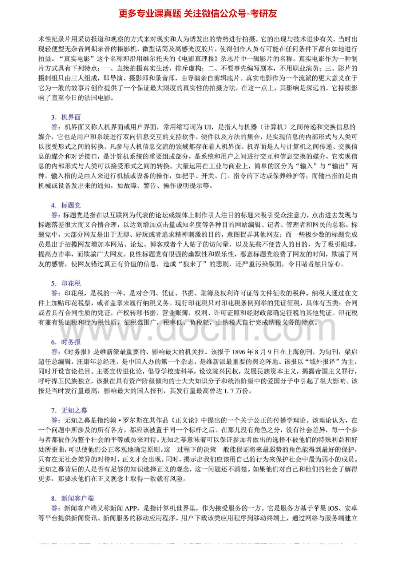 清华大学618新闻与传播史论2003-2015年真题其中2007、2009、2011-2012、2014有答案考研真题汇编.Image.Marked猴哥6个月前发布关注私信25.91MB59页08425清华大学618新闻与传播史论2003-2015年真题其中2007、2009、2011-2012、2014有答案考研真题汇编.Image.Marked此内容为免费资源,请登录后查看¥0 登录查看免费资源 第1页 / 共59页 第2页 / 共59页 第3页 / 共59页 该文档为免费文档,您可直接下载完整版进行阅读 © 版权声明文章版权归作者所有,未经允许请勿转载。THE END《清华大学》(618)新闻与传播史论考研资料考研专业课 喜欢就支持一下吧点赞25赞赏 分享QQ空间微博QQ好友海报分享复制链接收藏