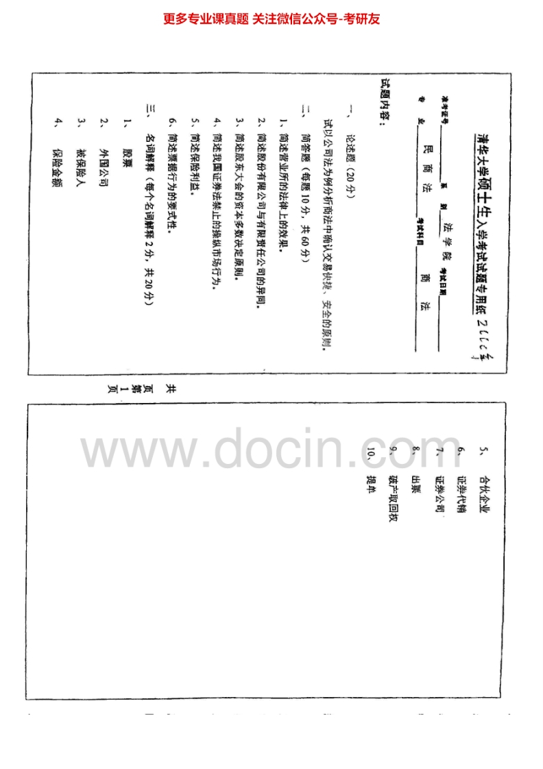 清华大学880商法学1999-2003考研真题汇编.Image.Marked