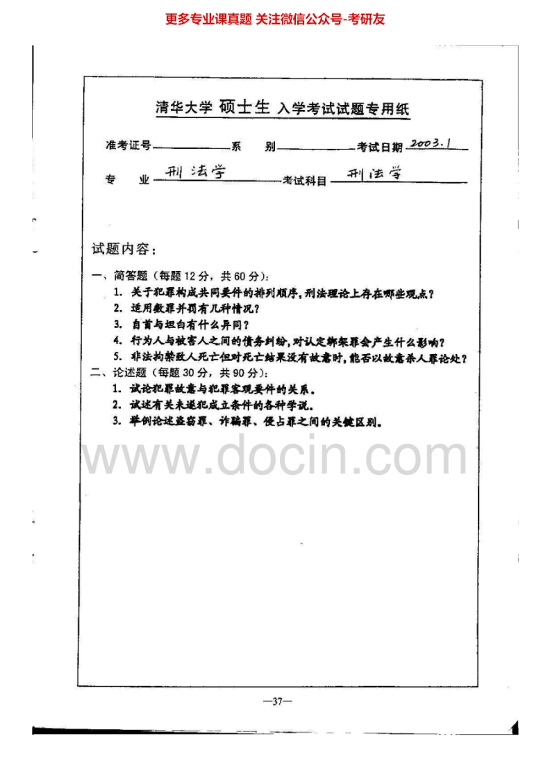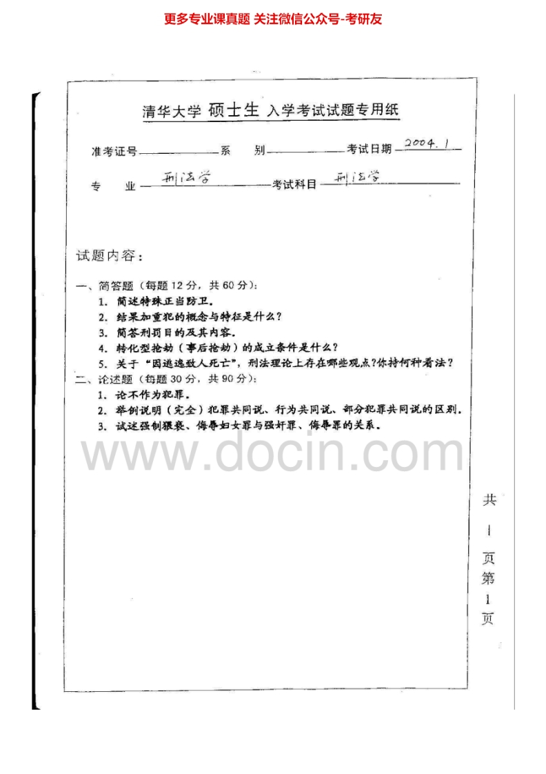 清华大学879刑法学2002-2004、2006、2009-2010考研真题汇编.Image.Marked