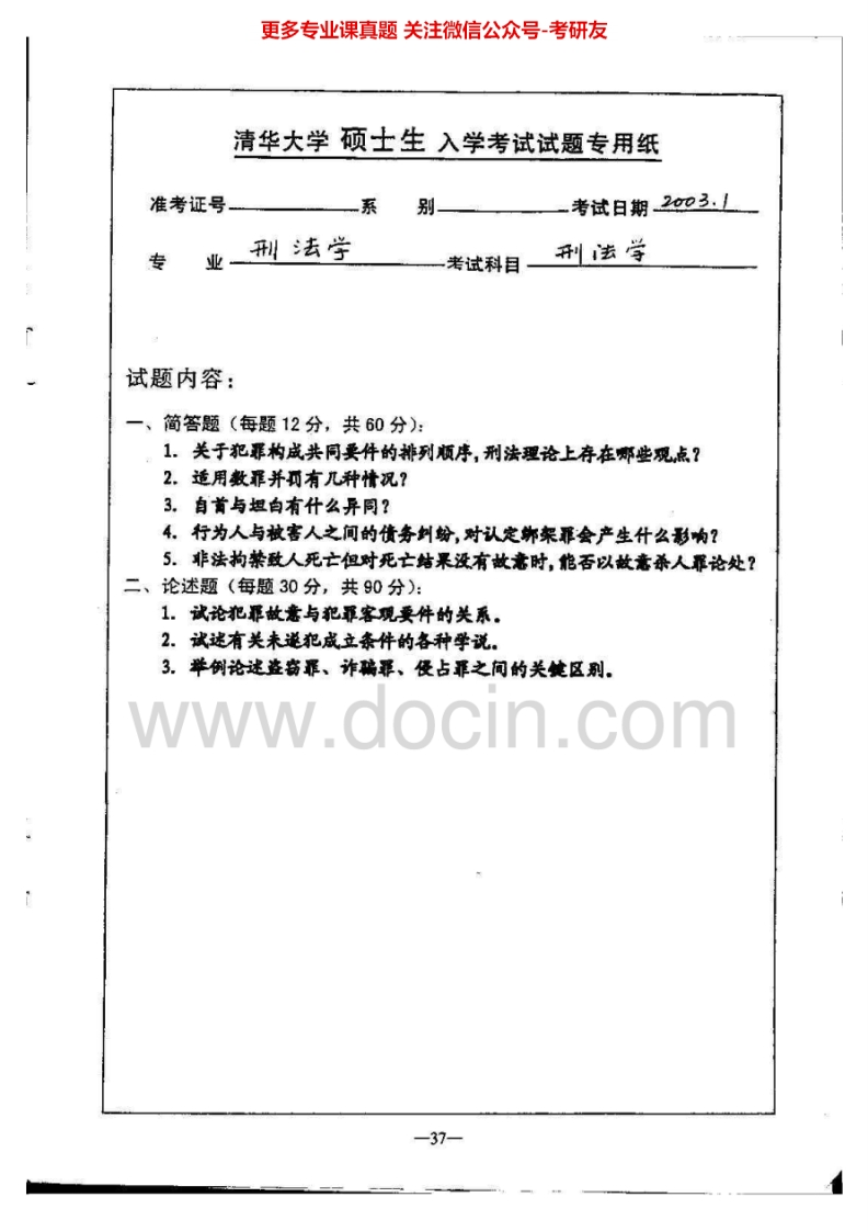 清华大学刑法学2002-2004、2006、2009-2010、2012考研真题汇编.Image.Marked猴哥6个月前发布关注私信1.26MB7页06018清华大学刑法学2002-2004、2006、2009-2010、2012考研真题汇编.Image.Marked此内容为免费资源,请登录后查看¥0 登录查看免费资源 第1页 / 共7页 第2页 / 共7页 第3页 / 共7页 该文档为免费文档,您可直接下载完整版进行阅读 © 版权声明文章版权归作者所有,未经允许请勿转载。THE END考研专业课 喜欢就支持一下吧点赞18赞赏 分享QQ空间微博QQ好友海报分享复制链接收藏