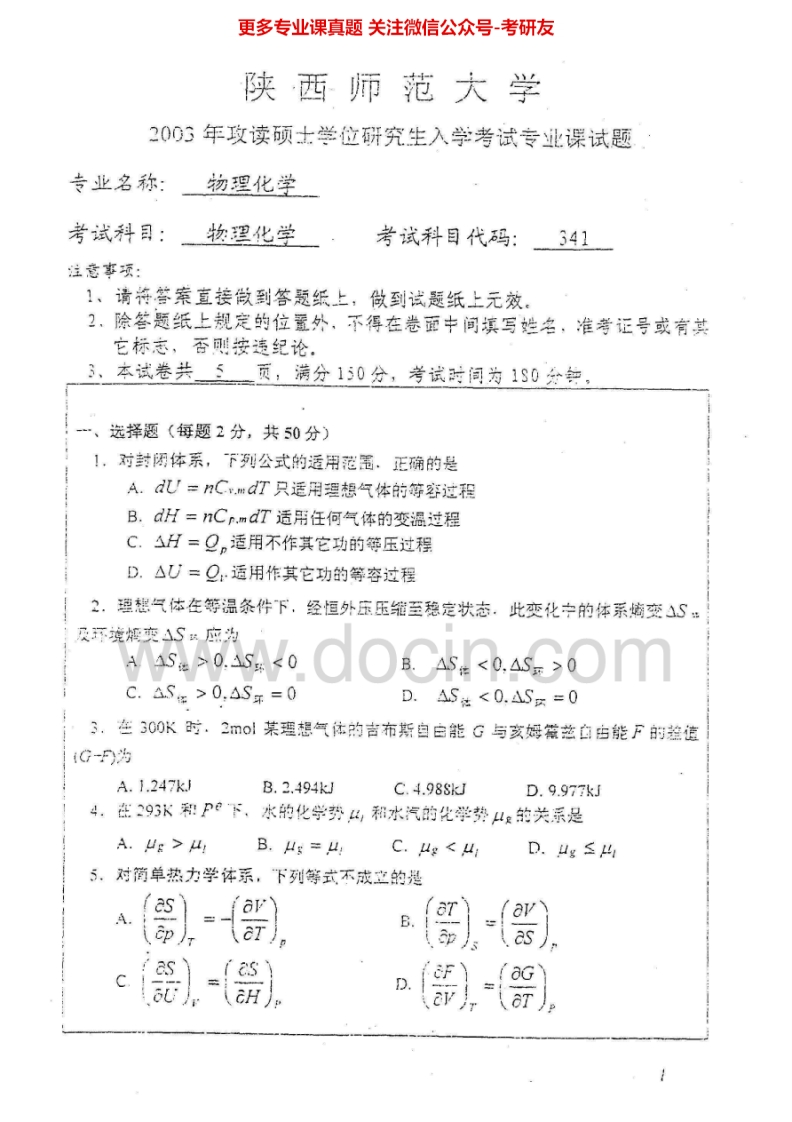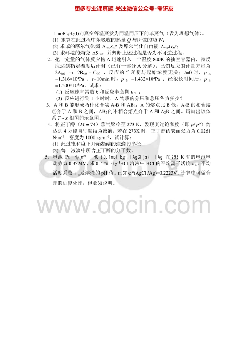 陕西师范大学物理化学(含结构化学)历年真题2003-2005考研真题汇编.Image.Marked猴哥6个月前发布关注私信5.25MB19页03923陕西师范大学物理化学(含结构化学)历年真题2003-2005考研真题汇编.Image.Marked此内容为免费资源,请登录后查看¥0 登录查看免费资源 第1页 / 共19页 第2页 / 共19页 第3页 / 共19页 该文档为免费文档,您可直接下载完整版进行阅读 © 版权声明文章版权归作者所有,未经允许请勿转载。THE END考研专业课 喜欢就支持一下吧点赞23赞赏 分享QQ空间微博QQ好友海报分享复制链接收藏