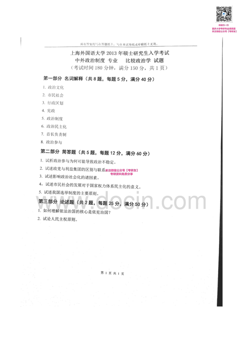上海外国语大学612比较政治学2013-2015考研真题汇编_1753610734猴哥6个月前发布关注私信0.56MB6页08834上海外国语大学612比较政治学2013-2015考研真题汇编_1753610734此内容为免费资源,请登录后查看¥0 登录查看免费资源 第1页 / 共6页 第2页 / 共6页 第3页 / 共6页 该文档为免费文档,您可直接下载完整版进行阅读 © 版权声明文章版权归作者所有,未经允许请勿转载。THE END《上海外国语大学》(361)德语翻译基础考研资料《上海外国语大学》(612)政治学基础考研资料考研专业课 喜欢就支持一下吧点赞34赞赏 分享QQ空间微博QQ好友海报分享复制链接收藏