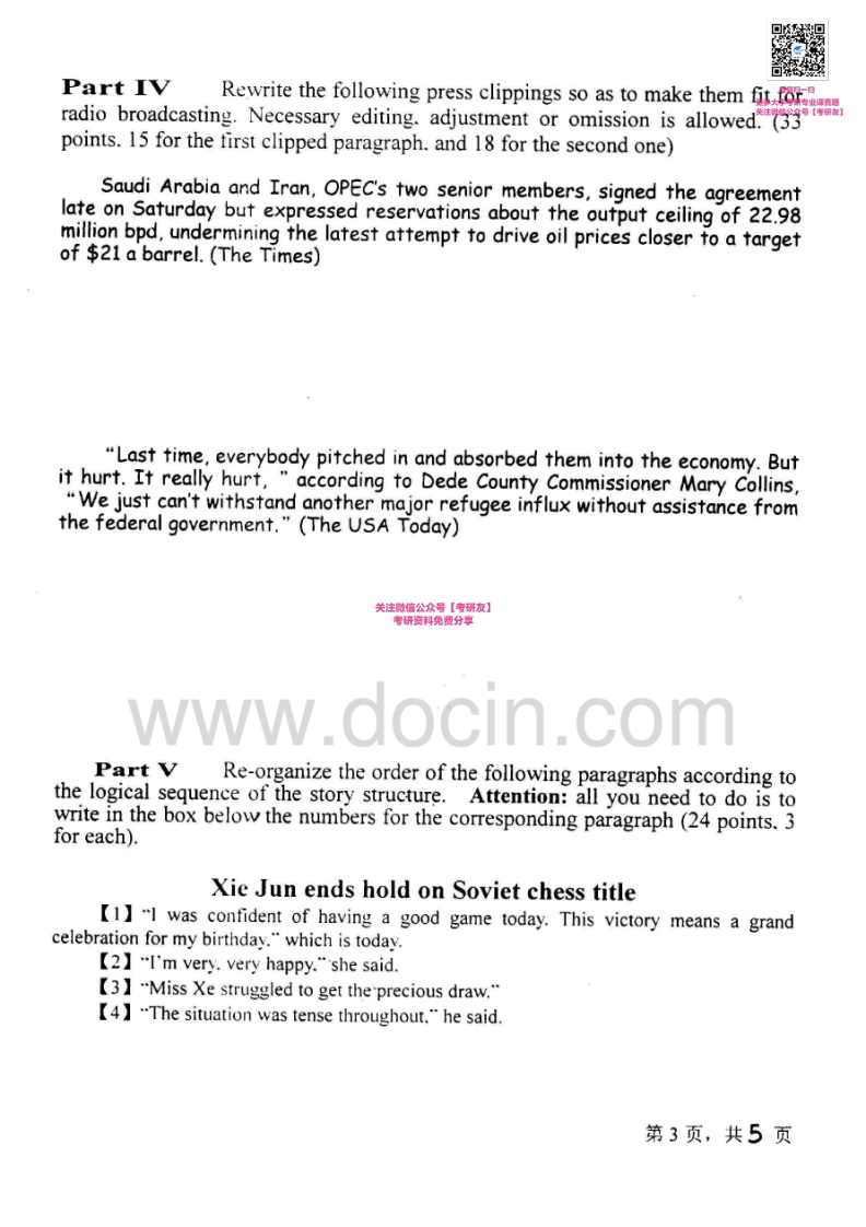 上海外国语大学639英语新闻业务2003、2005、2008-2009考研真题汇编_1753610735猴哥6个月前发布关注私信2.34MB11页03334上海外国语大学639英语新闻业务2003、2005、2008-2009考研真题汇编_1753610735此内容为免费资源,请登录后查看¥0 登录查看免费资源 第1页 / 共11页 第2页 / 共11页 第3页 / 共11页 该文档为免费文档,您可直接下载完整版进行阅读 © 版权声明文章版权归作者所有,未经允许请勿转载。THE END《上海外国语大学》(361)德语翻译基础考研资料考研专业课 喜欢就支持一下吧点赞34赞赏 分享QQ空间微博QQ好友海报分享复制链接收藏