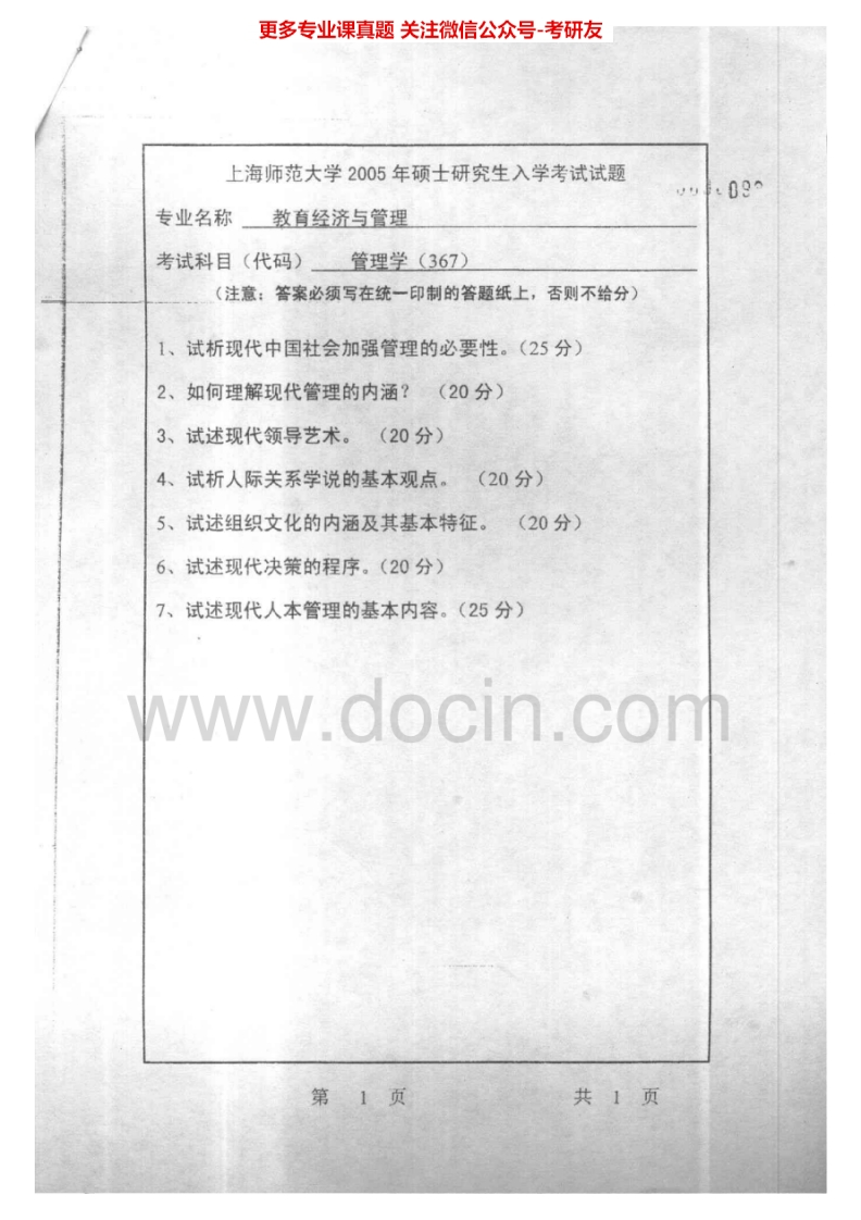 上海师范大学667管理学2004-2007考研真题汇编.Image.Marked