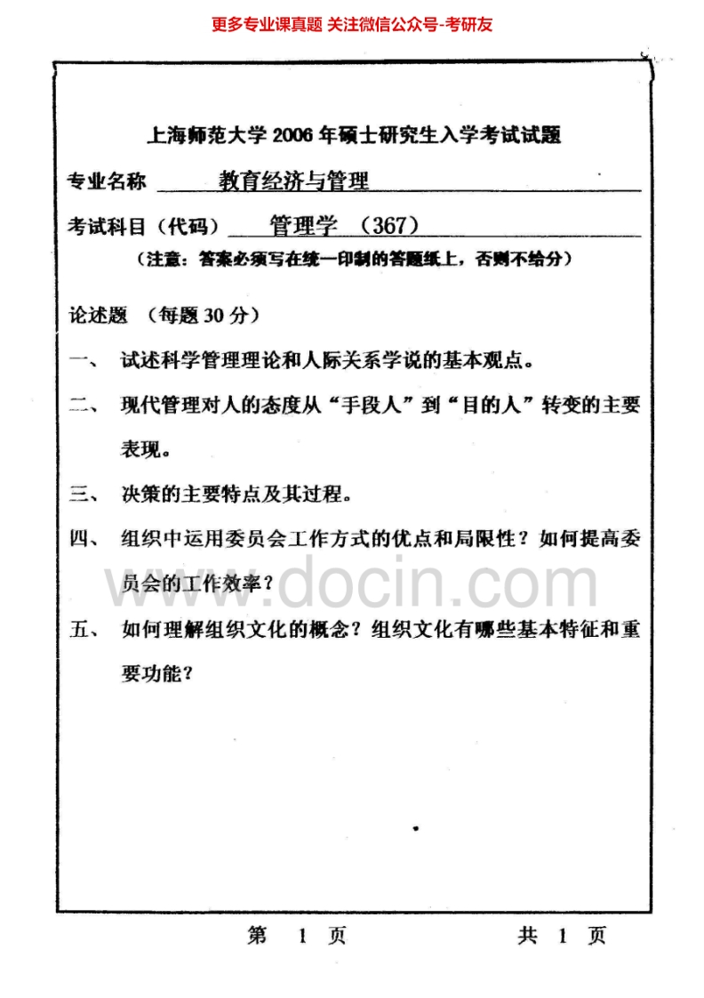 上海师范大学667管理学2004-2007考研真题汇编.Image.Marked-学习资源网 - 分享优质学习资料