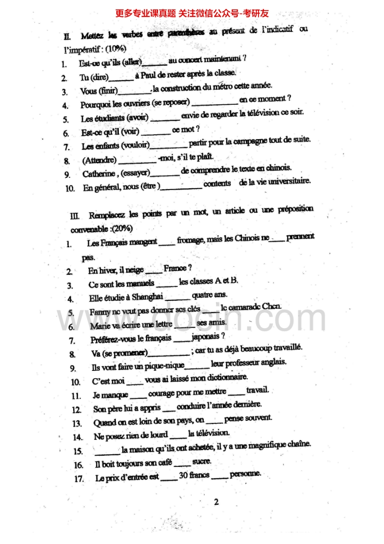 上海师范大学252法语(二外)2002-2007考研真题汇编.Image.Marked猴哥6个月前发布关注私信8.85MB30页08839上海师范大学252法语(二外)2002-2007考研真题汇编.Image.Marked此内容为免费资源,请登录后查看¥0 登录查看免费资源 第1页 / 共30页 第2页 / 共30页 第3页 / 共30页 该文档为免费文档,您可直接下载完整版进行阅读 © 版权声明文章版权归作者所有,未经允许请勿转载。THE END考研专业课 喜欢就支持一下吧点赞39赞赏 分享QQ空间微博QQ好友海报分享复制链接收藏