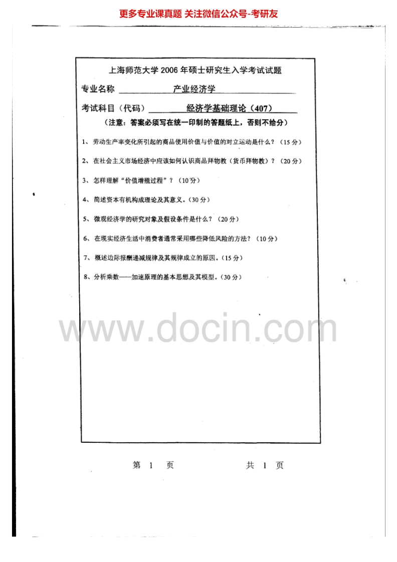 上海师范大学907经济学基础理论2005-2006考研真题汇编.Image.Marked-学习资源网 - 分享优质学习资料