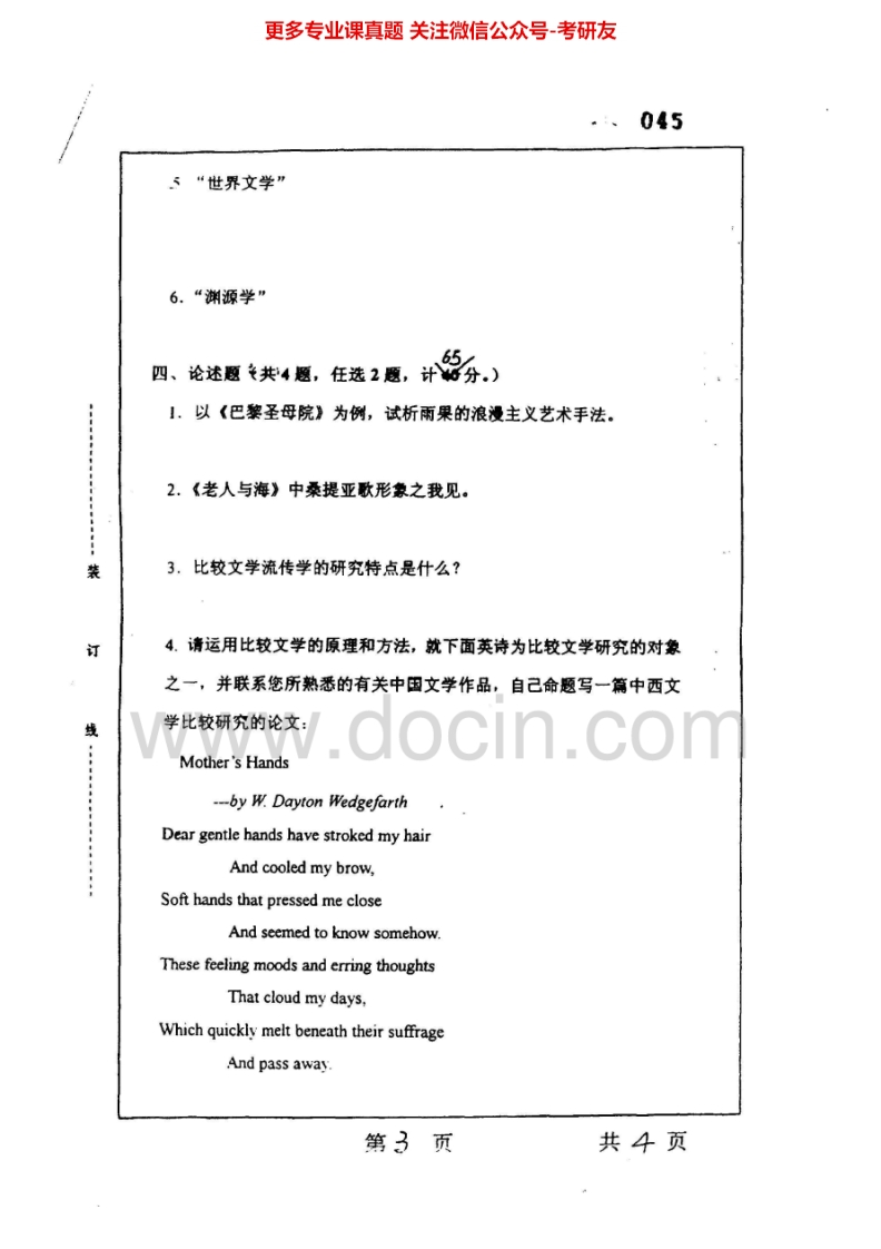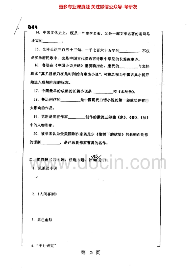 上海师范大学外国文学与比较文学2003-2008、回忆版2013-2014考研真题汇编.Image.Marked猴哥6个月前发布关注私信4.62MB17页05242上海师范大学外国文学与比较文学2003-2008、回忆版2013-2014考研真题汇编.Image.Marked此内容为免费资源,请登录后查看¥0 登录查看免费资源 第1页 / 共17页 第2页 / 共17页 第3页 / 共17页 该文档为免费文档,您可直接下载完整版进行阅读 © 版权声明文章版权归作者所有,未经允许请勿转载。THE END考研专业课 喜欢就支持一下吧点赞42赞赏 分享QQ空间微博QQ好友海报分享复制链接收藏