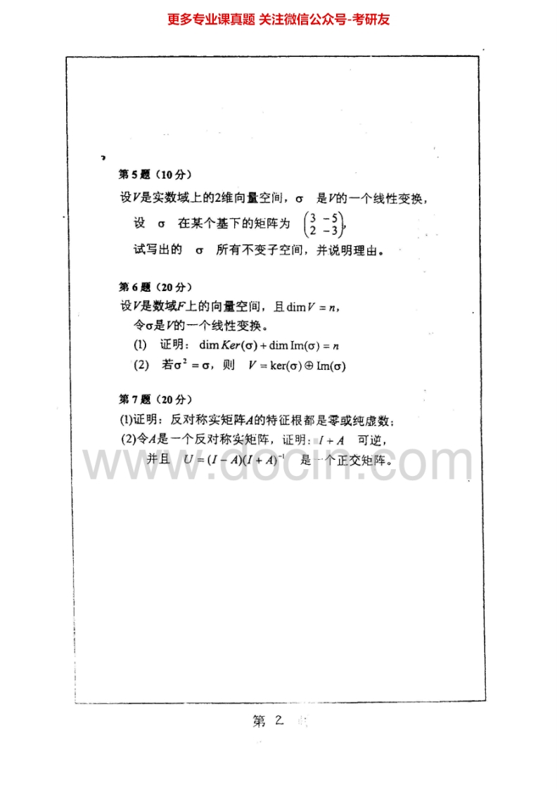 上海师范大学861高等代数2001-2006其中2002-2005有答案考研真题汇编.Image.Marked