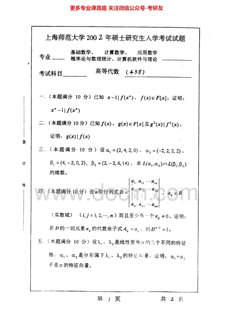 上海师范大学861高等代数2001-2006其中2002-2005有答案考研真题汇编.Image.Marked-学习资源网 - 分享优质学习资料
