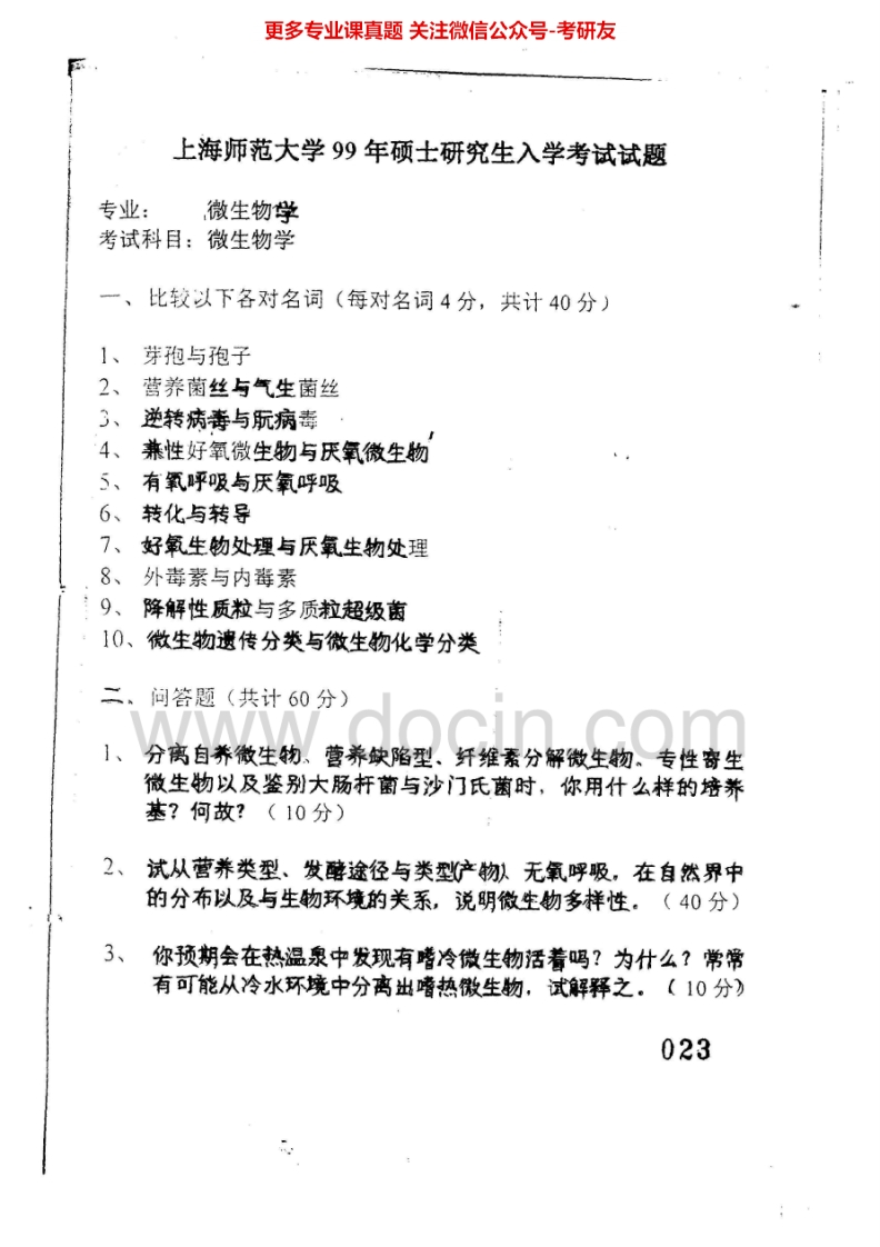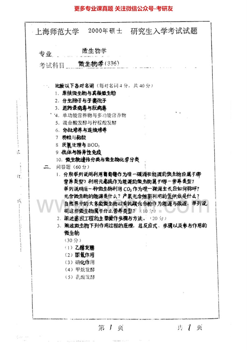 上海师范大学微生物学1998-2008考研真题汇编.Image.Marked猴哥6个月前发布关注私信3.40MB15页09142上海师范大学微生物学1998-2008考研真题汇编.Image.Marked此内容为免费资源,请登录后查看¥0 登录查看免费资源 第1页 / 共15页 第2页 / 共15页 第3页 / 共15页 该文档为免费文档,您可直接下载完整版进行阅读 © 版权声明文章版权归作者所有,未经允许请勿转载。THE END考研专业课 喜欢就支持一下吧点赞42赞赏 分享QQ空间微博QQ好友海报分享复制链接收藏